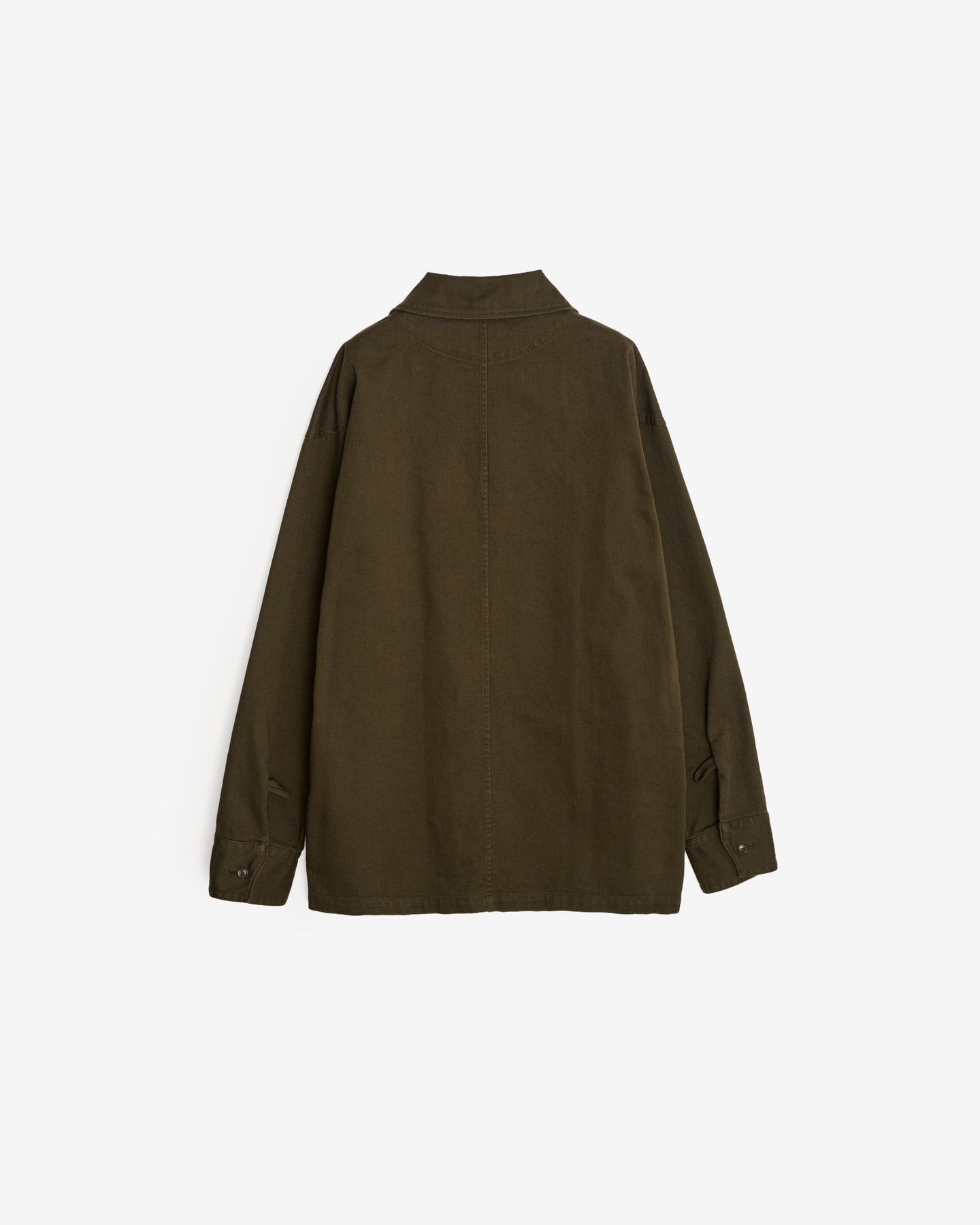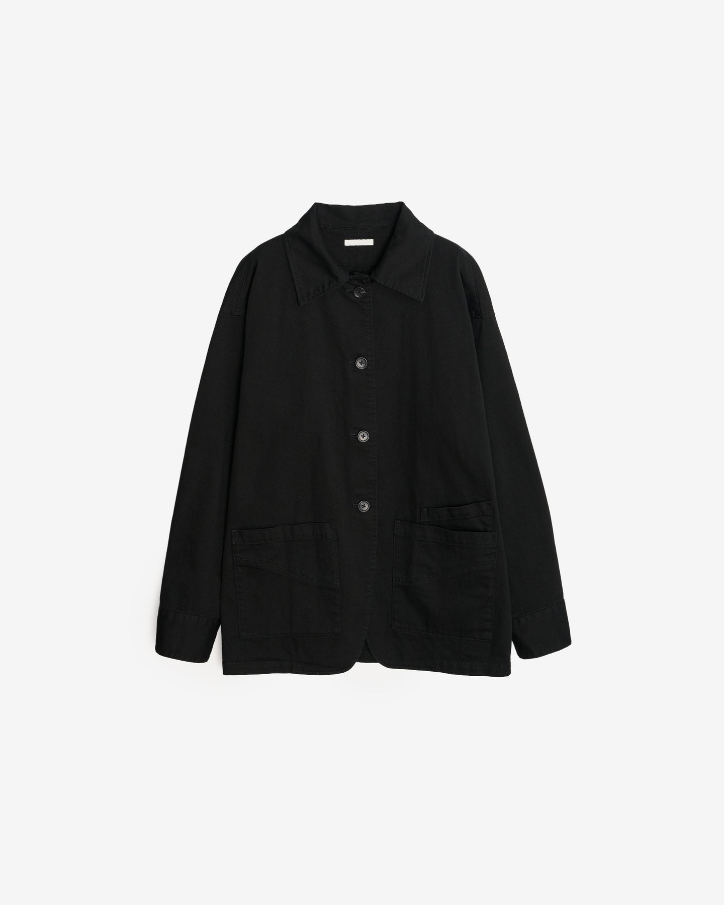 This work jacket is made from high-density cotton twill. It has a unique look and texture created by vintage processing, while incorporating ENOF's signature curved, beautiful cut for an elegant look.